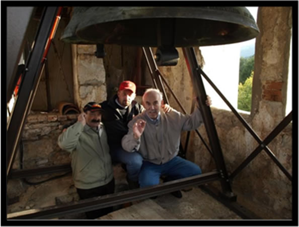 Ručno se je zvonilo (kampanalo) od pamtivijeka na procesijama za Tijelovo i za Uskrs. Nažalost, Uskršnja se je procesija se više ne održava, tako da mještani takav zvuk zvona mogu čuti jedino još za Tijelovo. Zasigurno se je taj ritam kojeg zvonari proizvode, tijekom godina mijenjao, s obzirom da su prije na zvoniku bila 3 zvona i da su zvona na sebi imala dršku pomoću koje su ih zvonari gurali. Tijekom Drugog svijetskog rata, talijanski su okupatori uzeli jedno zvono za proizvodnju topova. Također, današnji zvonari kažu kako nikad izbliza nisu vidjeli kako to čine njihovi predci, jer im je kao djeci bilo zabranjeno popeti se na zvonik. Oni danas oponašaju zvuk kojeg su slušali kao djeca. Dužnost kampananja godinama obavljaju iste osobe, stoga su veoma rijetki ti koji naš tradicijski zvuk zvona znaju i mogu održavati vitalnim. Dakle za proizvesti taj zvuk potrebne su tri osobe, od kojih jedna lijevo-desno klepetom tuče o veliko zvono, dok osoba koja klepetom tuče o malo zvono mora udariti dva puta, dok klepet o veliko zvono udari jednom. Treća osoba prati njihov ritam udarajući dvjema čekićima o željezni predmet (dio koji spaja dva vagona) koji ima oblik gljive i koji visi na špagi.